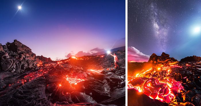 Photographer Risks Getting Burned To Capture Lava, Meteor, Milky Way And Moon In A Single Shot