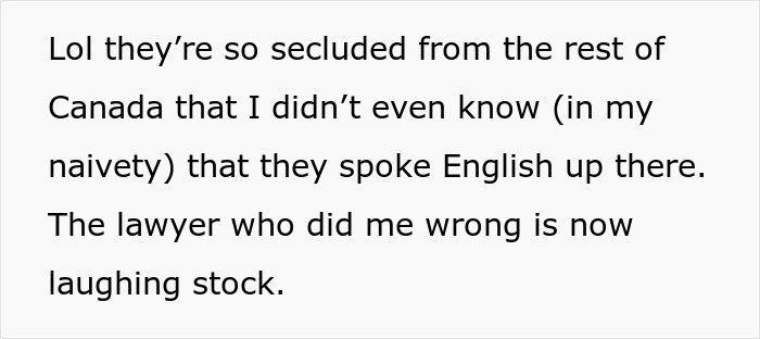 However, the situation affected not only Canadians. For example, one of the people in the comments admits that they’re not familiar with the regulatory system for lawyers there, but threatening a client over an online review sounds like something their law society would be definitely interested in hearing about. As you can see, most likely, the lawyer who offended the original poster and their relatives will face hard times in the near future…