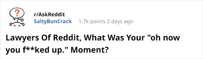 Reddit user SaltyBunCrack turned to the online community’s internet lawyers and asked them to share their “oh now you messed up moments” from the courtroom. Scroll down to read the stories and Bored Panda's interviews with redditor SaltyBunCrack about their viral thread and with one of the lawyers who shared their thoughts on Reddit. Upvote the stories that you enjoyed the most and share your own similar moments in the comments below if you have any courtroom experience.
