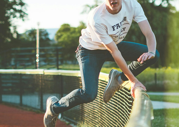 Client’s in jail awaiting trial for an unrelated charge. Client decides he wants out of there and stacks chairs in the rec room. Client climbs chairs, pushes through the ceiling tile, then crawls on top of ceiling toward the next room over. Client falls through the ceiling five feet from the starting point and plummets ten feet in a shower of ceiling tiles.
