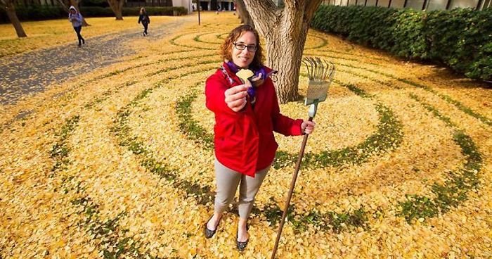 Every Year This University Employee Rakes Leaves Into Stunning Works Of Art And Leaves It For Students To Find