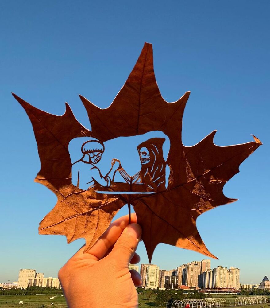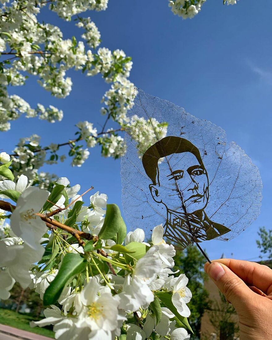 8 years ago, I have started my project “100 methods of drawing”, and leaf-cutting art is one of my favorite. Within this project, I try to use different materials and techniques. I draw with ketchup, nails, gypsum, food, etc. So once during autumn in 2013, there were a lot of fallen leaves on the street, so I came up with the idea to use leaves as a material to draw. Leaf’s life is fleeting so as our lives and I am giving a second life to them to discover an untold story.