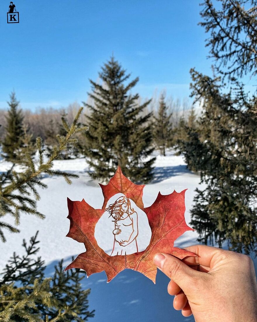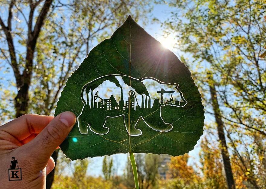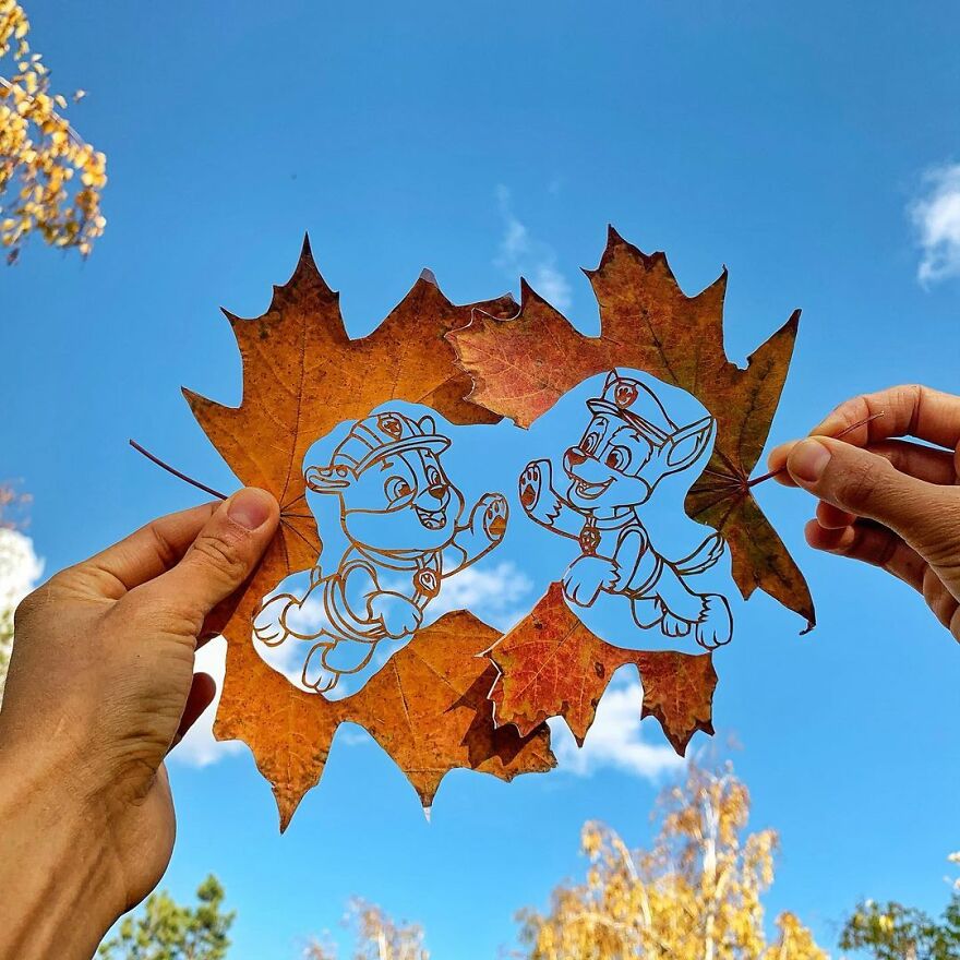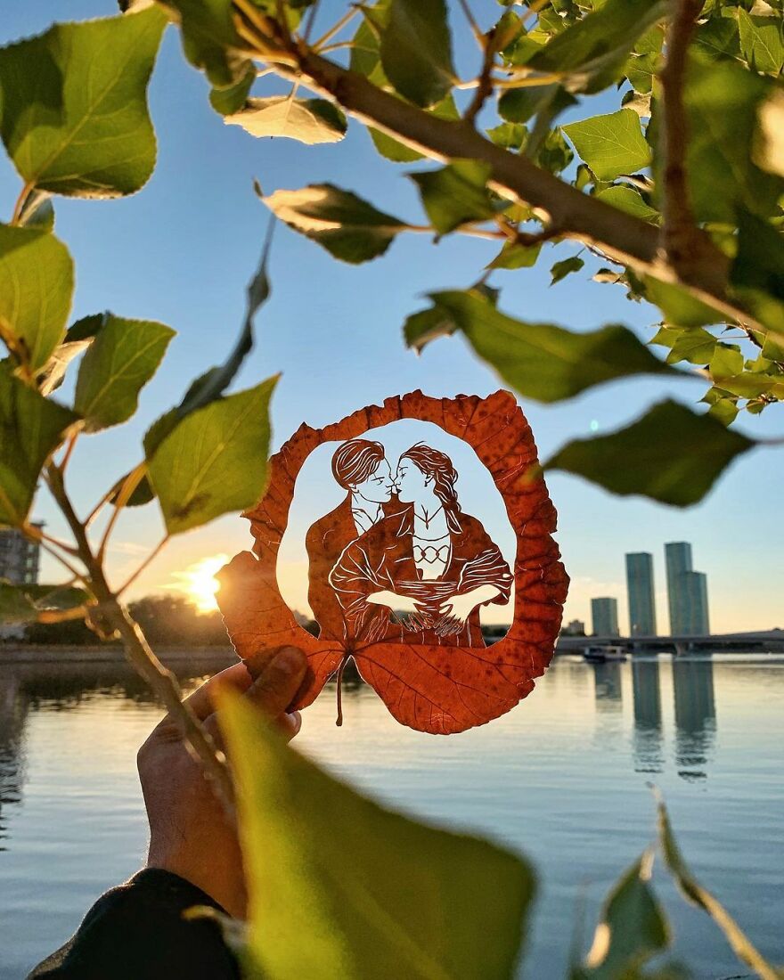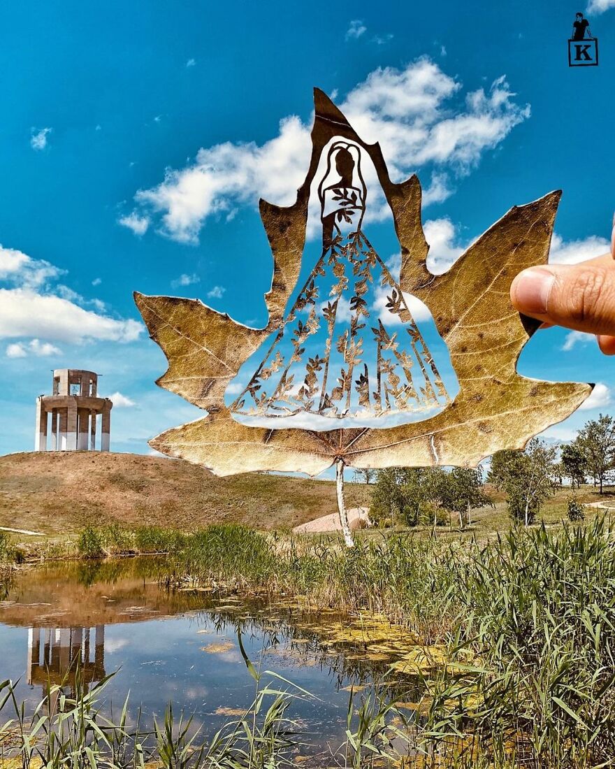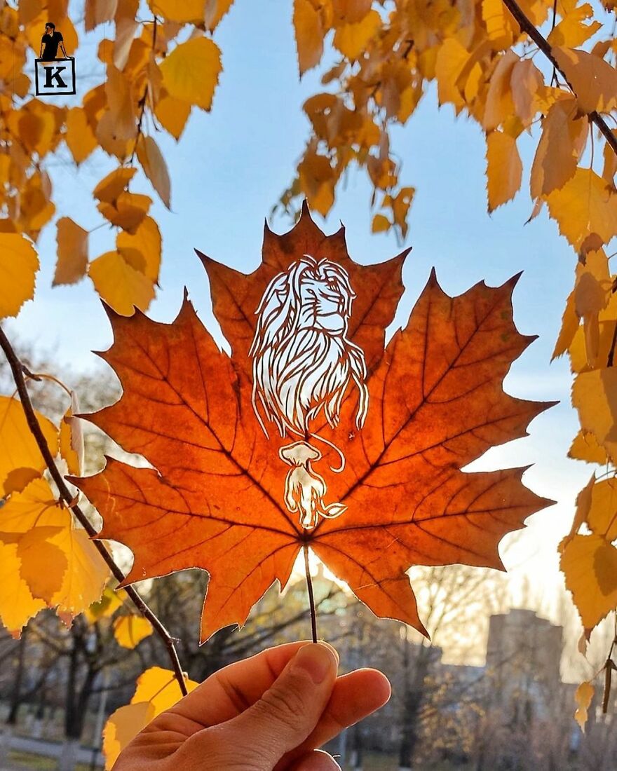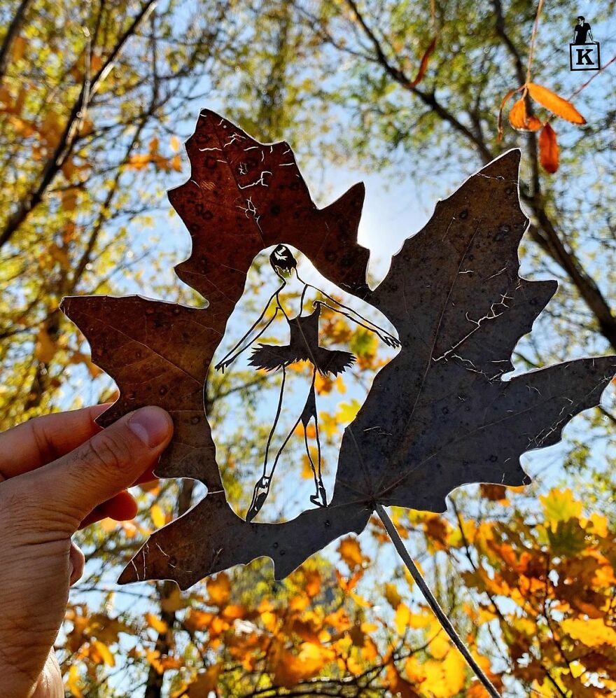 8 years ago, I have started my project “100 methods of drawing”, and leaf-cutting art is one of my favorite. Within this project, I try to use different materials and techniques. I draw with ketchup, nails, gypsum, food, etc. So once during autumn in 2013, there were a lot of fallen leaves on the street, so I came up with the idea to use leaves as a material to draw. Leaf’s life is fleeting so as our lives and I am giving a second life to them to discover an untold story.