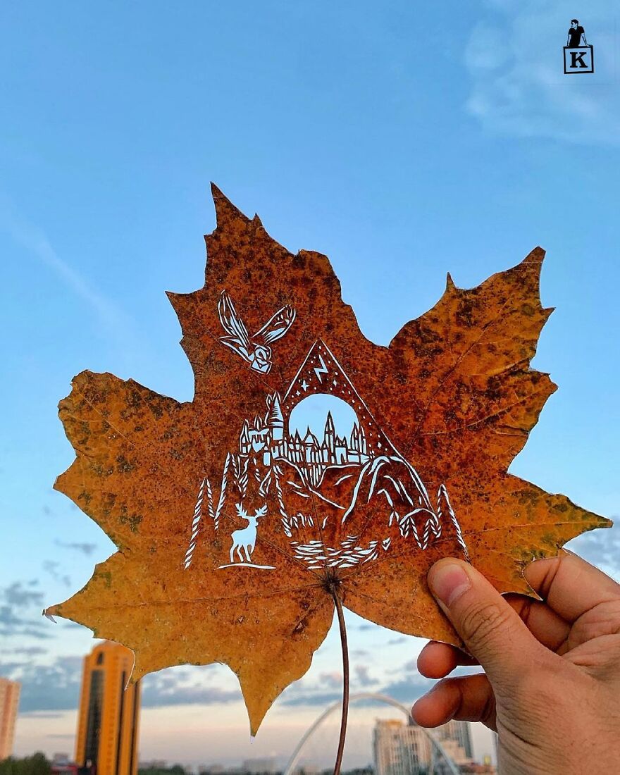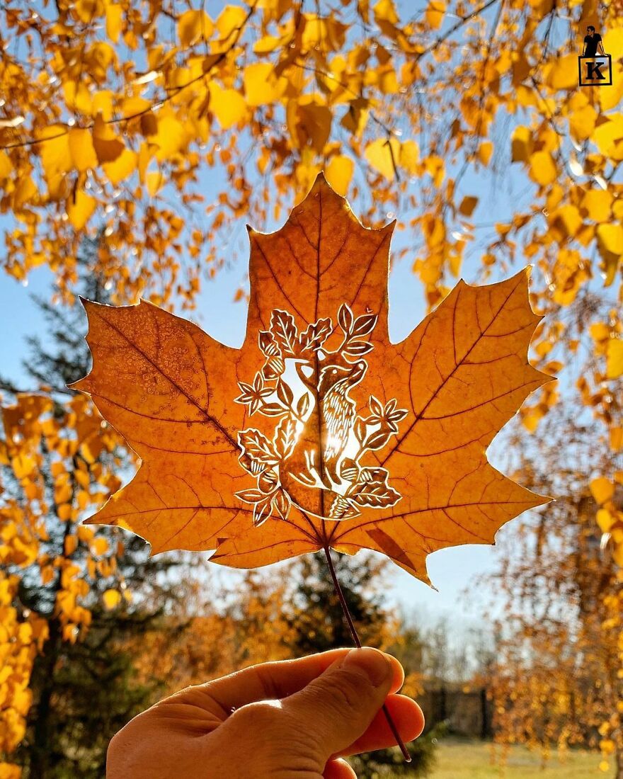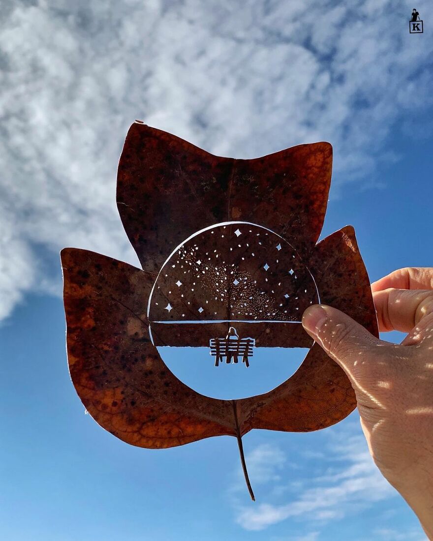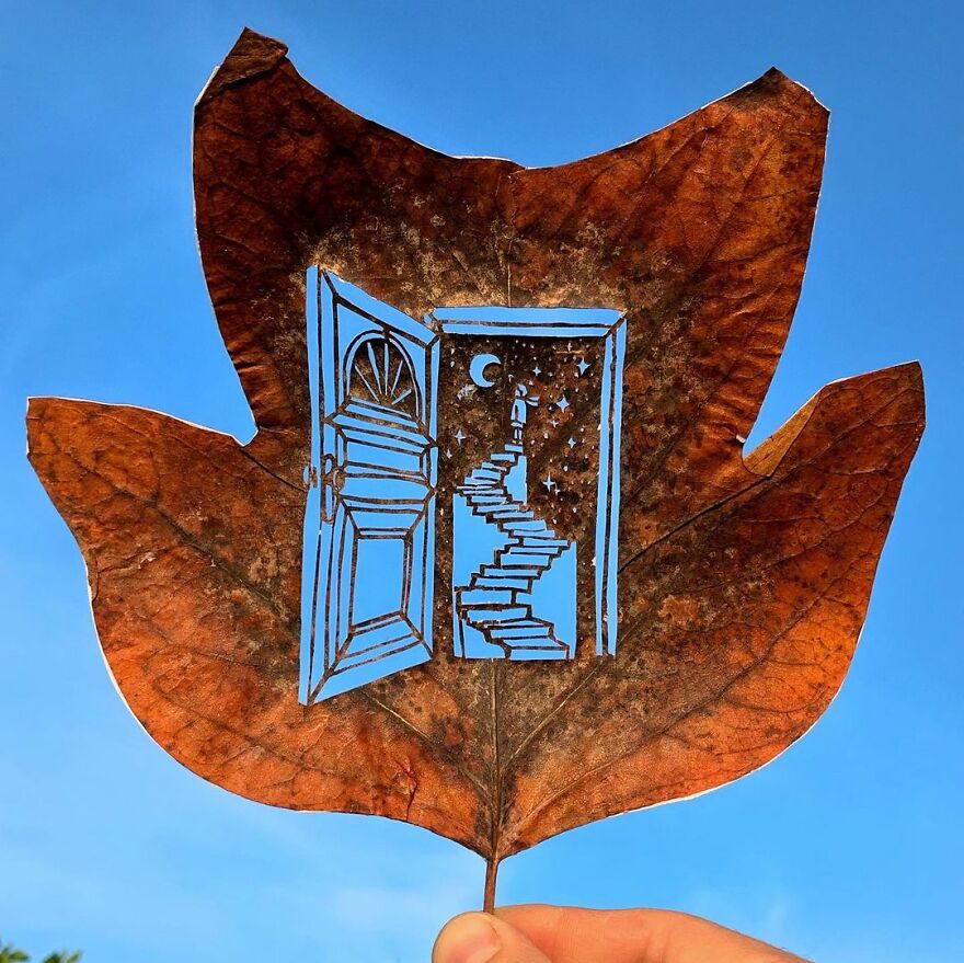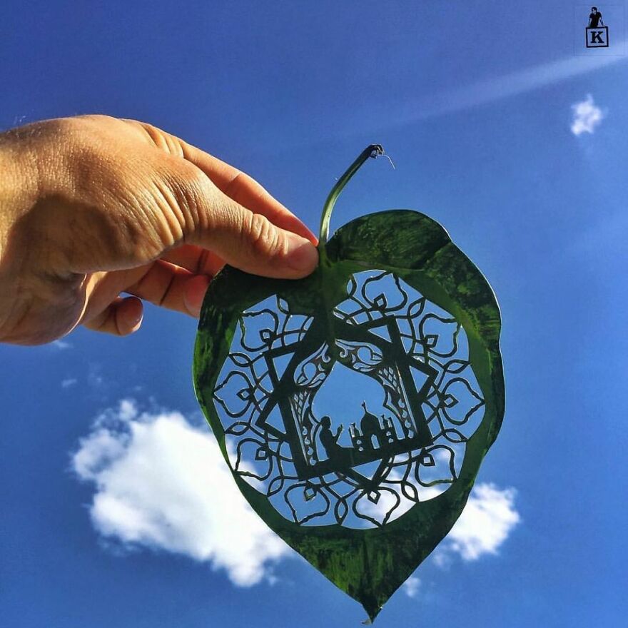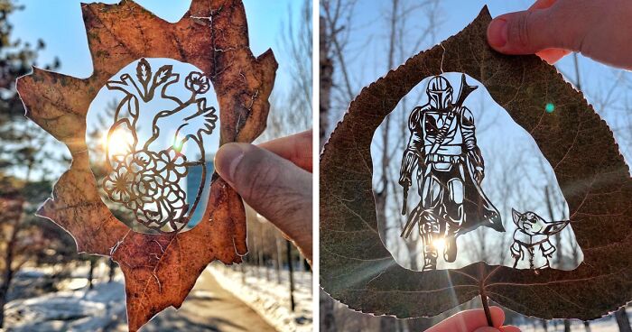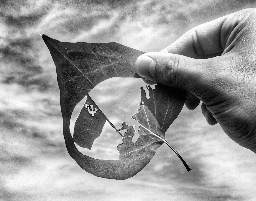 8 years ago, I have started my project “100 methods of drawing”, and leaf-cutting art is one of my favorite. Within this project, I try to use different materials and techniques. I draw with ketchup, nails, gypsum, food, etc. So once during autumn in 2013, there were a lot of fallen leaves on the street, so I came up with the idea to use leaves as a material to draw. Leaf’s life is fleeting so as our lives and I am giving a second life to them to discover an untold story.