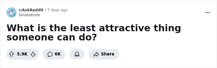 These Redditors know exactly what I mean. Recently, they shared the things people do that instantly make them unattractive, and honestly, they’ve made some pretty solid points. Scroll down to see their takes, and feel free to share your thoughts in the comments!
