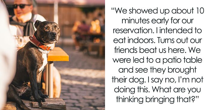 This time, however, it turned out differently. The friends agreed to meet in one restaurant, from the pet-friendly category, where there is a patio with tables for dog owners. However, the OP, as always, asked his friends in advance not to take their pet with him. Imagine the surprise, disappointment and indignation of the author and his fiancee when, upon entering the bar, they found their friends at a table on the patio – along with their dog.