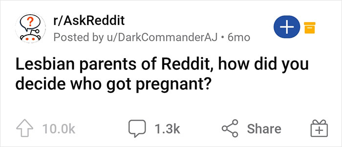 However, in some families, this very same decision has an added layer of complexity. For instance, some lesbian couples need to decide who will carry the baby. It is exactly this dilemma that the lesbian parents of Reddit pondered in a viral thread on r/AskReddit.