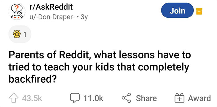 If that sounds familiar to you, we hope that you’ll find comfort in knowing you’re definitely not the only one. One Reddit user decided to find out what funny accidents parents had when they shared advice with their young ones. They asked, "What lessons have you tried to teach your kids that completely backfired?" and thousands of stories rolled in.