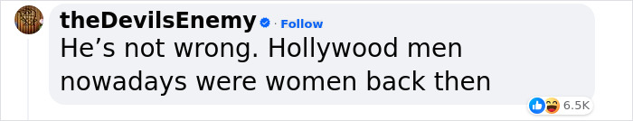 Load More Replies...Old hollywoods ideas of manhood were blech. I don't care what your gender, if you look good in something, go for it. I'm a woman who can't pull off a dress to save my life. Also look horrible in glasses.