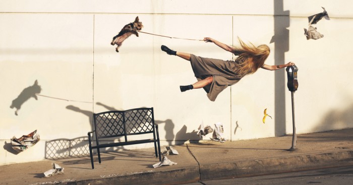 The practicality of having my subjects physically there in the frame allows for authentic reactions and properly matched lighting, plus jumping onto mats is mad fun. A stunt mat and a ladder are the two most commonly used tools in my kit, I don’t leave the house without them. My process in a post is simply addition and subtraction, have someone sit on a ladder, delete the ladder and bada bing bada boom you got yourself a levitating subject.