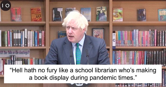 In a way, book covers are virtually posters — the visuals are made to represent the events and ideas within. And one school librarian may have recently used them to protest against the Prime Minister of the United Kingdom.