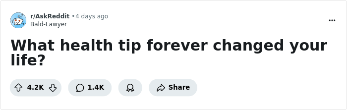 So, it probably shouldn't come as a surprise that when Reddit user Bald-Lawyer asked others on the platform to share the best health tips they've received, over 1,400 comments poured in, many offering simple, yet effective lifestyle changes. Here's to looking out for each other!