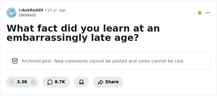 Someone asked, “What fact did you learn at an embarrassingly late age?” and thousands of answers came flooding in faster than Santa could come down the chimney. Some were hilarious cases of “lost in translation,” like a person thinking the Sistine Chapel was the “16th Chapel.” Others were more dramatic. Pure, unfiltered human cluelessness.