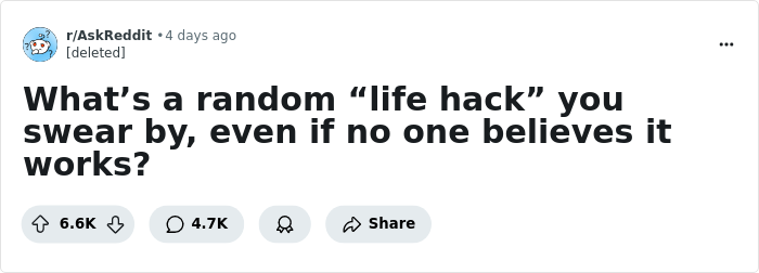 A recent discussion on r/AskReddit invited people to share life hacks they stand behind even when skeptics doubt their usefulness, and thousands have disclosed their favorite "upgrades" to everyday living.
