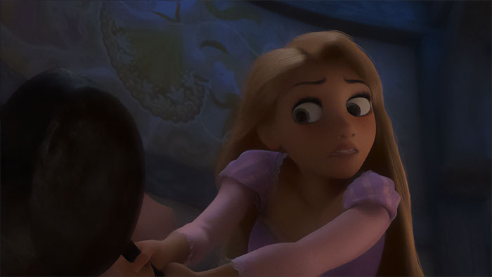 heartlikeabomb comments: "We just talked about this in our staff meeting this morning (I’m a social worker) because we have a teen girl who was hitting her sister and eventually upgraded to using a cast iron skillet. Some coworkers were talking about video games but I said she probably learned it from Tangled."