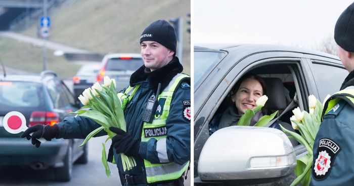 For the last couple of years, Lithuanian officers have been pulling women over for the most beautiful reason during International Women’s Day. Instead of giving ladies a ticket, they hand them flowers to celebrate the occasion.
