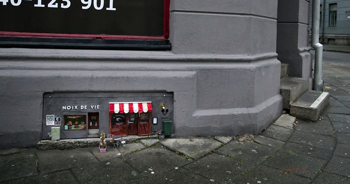 One of them is selling nuts and the other offers cheese. Besides the well-crafted interiors, there are posters about upcoming mice concerts and other events. The amount of detail that went into creating this street art installation is huge! The identities of Anonymouse are still unknown, but you can check their Instagram account for more information.