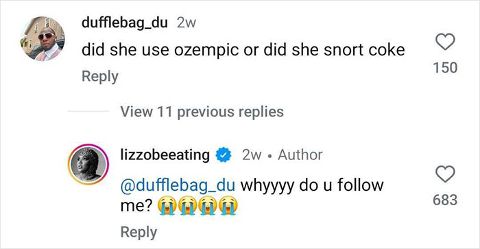 Lizzo previously fired back at an Instagram user who accused her of using Ozempic to lose weight