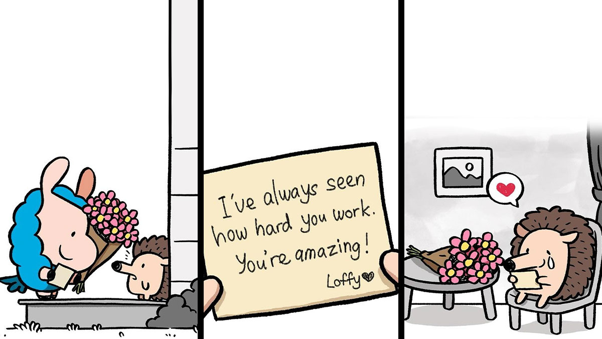 At the heart of the comics is the friendship between an optimistic llama and a more sensitive hedgehog. Rather than offering big solutions, the characters focus on listening, staying present, and moving forward together, even when things feel uncertain. Through their interactions, Chris highlights themes of empathy, self-acceptance, and quiet resilience, aiming to bring more positive and comforting moments to social media spaces that often feel overwhelming.