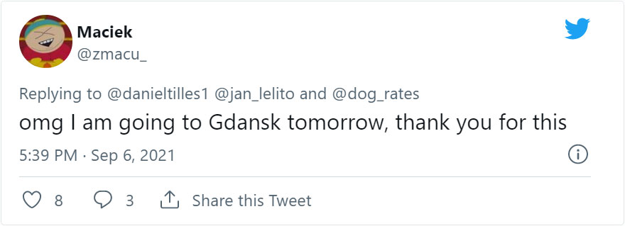 “The dog from the balcony” became the highest-rated (5 stars!) tourist attraction both on Google maps and the local Polish website (think of it as Polish Trip Advisor) that lists most of the places to visit in different cities of Poland.