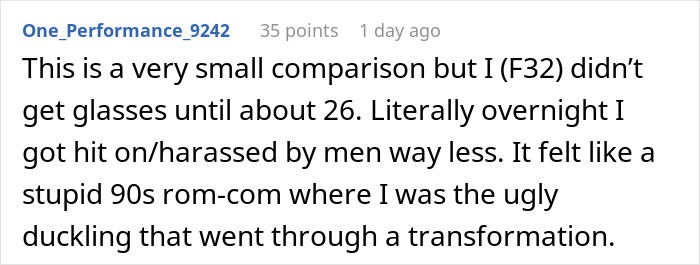 “I think the first thing for anyone with pretty privilege to do is to make an effort to notice when this is happening. Then one can realize that they are being treated differently, preferentially, to others for the simple reason of looking a certain way at a certain age. This isn’t fair, and it isn’t right, but that’s the way our society is,” u/Cool-Wear-8826 told us.