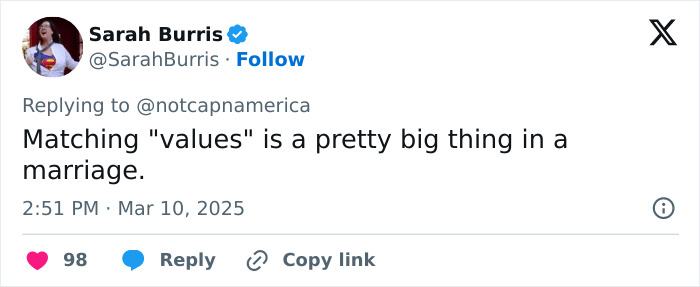 On the other hand, many supported her decision and said, “Matching ‘values’ is a pretty big thing in a marriage.”