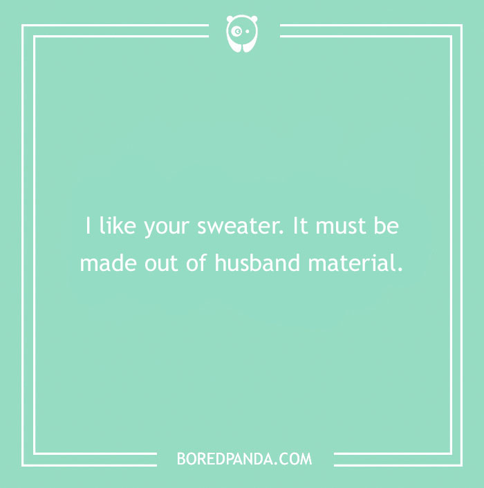 I like your sweater. It must be made out of husband material.