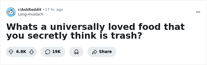 There are many people who sincerely hate even the most popular foods on the planet, even if they’re not ready to say it out loud. And only in certain online threads, from time to time, when someone asks: "What's a universally loved food that you secretly think is trash?" By the way, such threads always have a lot of interesting opinions - so we hasten to share them with you.