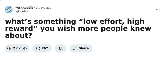 “What’s Something ‘Low Effort, High Reward’ You Wish More People Knew About?” (30 Answers)