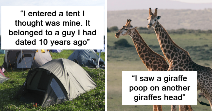 I was stumbling around the tent area of a festival in Portugal late at night and drunk and entered a tent I thought was mine. It was not. But it did belong to a guy I had dated in high school in Australia about 10 years earlier.
