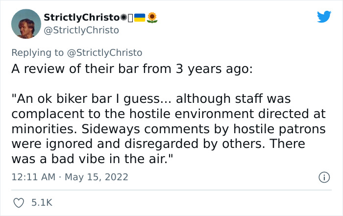 This Lyft driver kicks out a local bar owner for being racist, they react by being even more racist. pic.twitter.com/ZPrGtF4Her— :увядший_цветок:_Imposter_:паутина: (@Imposter_Edits) May 14, 2022