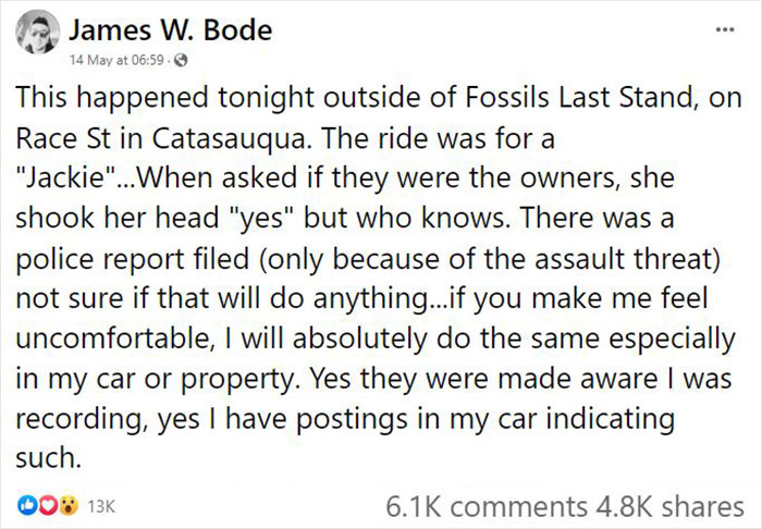 For example, as it happened to the ordinary American Lyft driver James W. Bode, who, a few days ago, shared a dashcam video on his Facebook page, telling about an incident that happened to him.