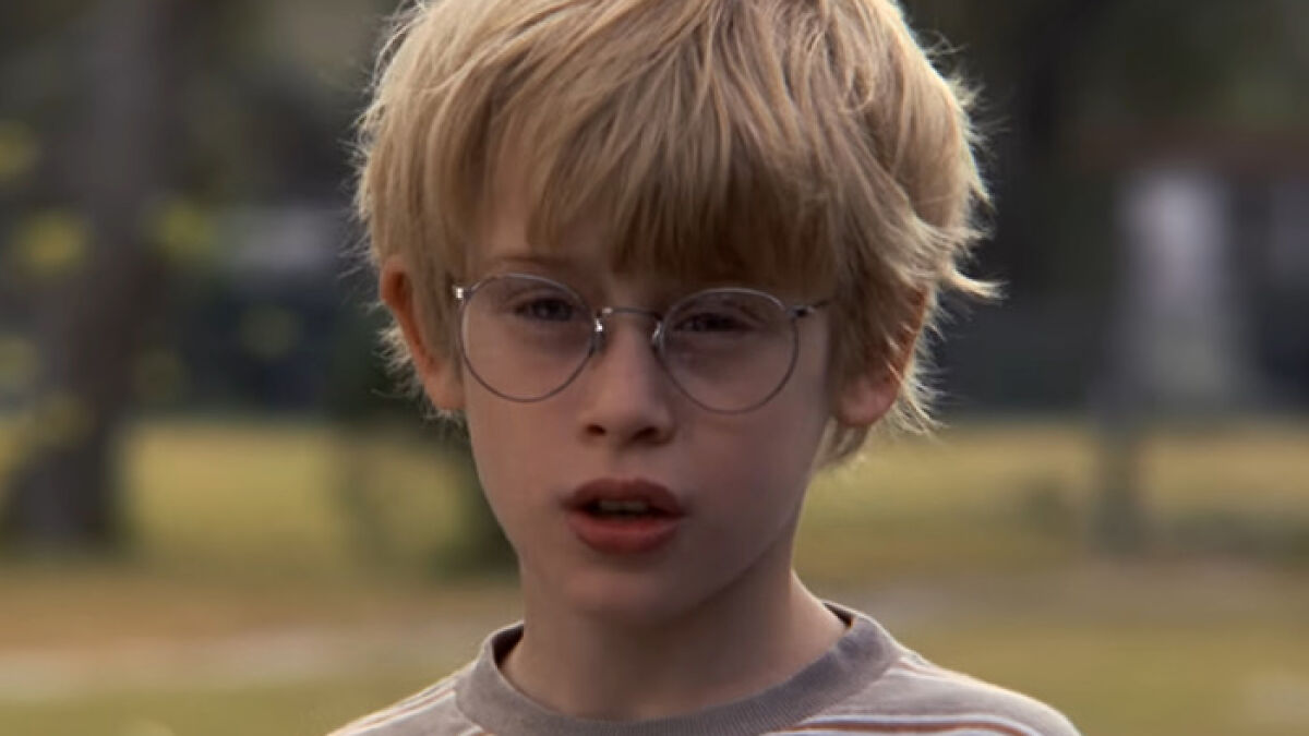 Young Macaulay Culkin wearing glasses in a scene from My Girl, revealing the tragic filming behind it.