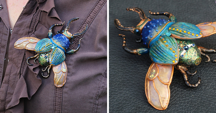 Beautiful Magical Beetles jewellery from polymer clay!