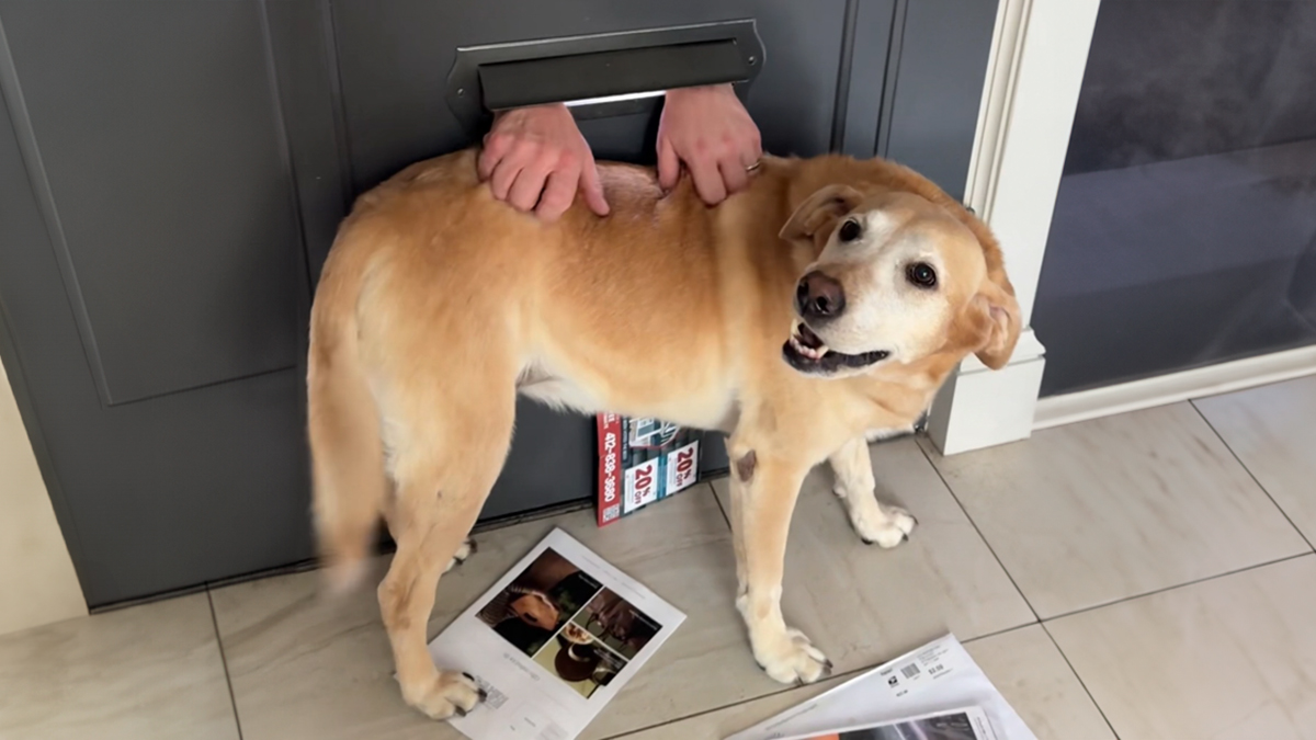 Interview With OwnerDo you remember that fictional character in The Addams Family called Thing? Well, it appears that one Labrador retriever is lucky enough to get two of them daily providing cuddles through the mail slot.