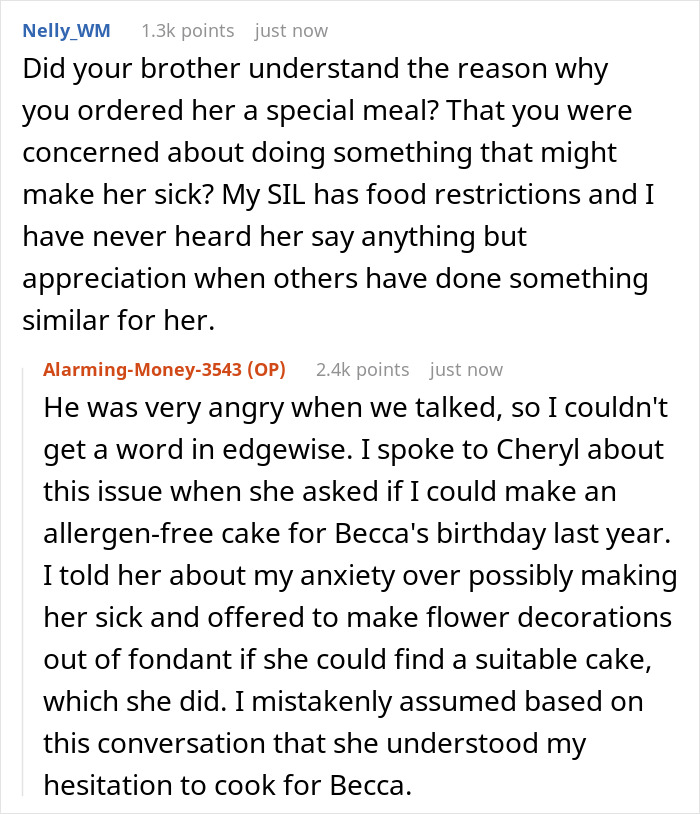 Load More Replies...Geez, she obviously went to a lot of trouble and probably great expense to provide the child with a delicious and safe meal, and that’s how they treated her efforts. Plus they ruined the dinner party for everyone else. I hope they came to their senses and apologized big time later on. I wouldn’t have wanted to make her a meal from scratch either in case something went wrong and she had a reaction. It would be so devastating and stressful.