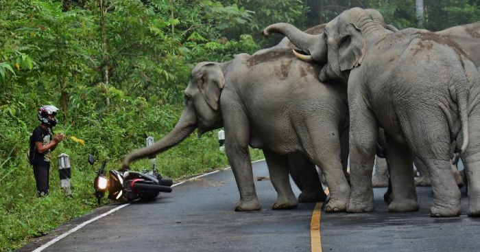 Man Apologizes To Elephants After Disturbing Them With Motorbike In Thailand