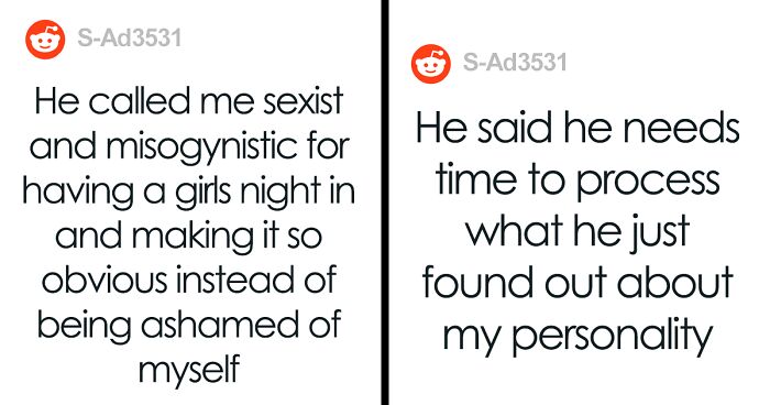 Redditor u/S-Ad3531 shared a story on the AITA subreddit and described how her boyfriend lost it when he found out that she’s hosting a girls’ night in on the weekend. She explained that they’ve been dating for a few months now and meet at her place every weekend. When she had to cancel due to the fact that some of her girlfriends would be coming over, her boyfriend could not believe she was serious.