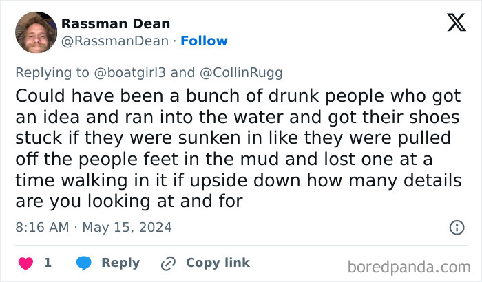 “I’m guessing that whoever is throwing the shoes down here is expecting that they’re gonna be underwater,” speculated the man