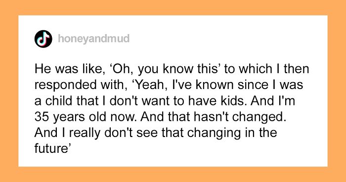 “He got a little curious at that part and was like, ‘Oh, you know this’ to which I then responded with, ‘Yeah, I’ve known since I was a child that I don’t want to have kids. And I’m 35 years old now. And that hasn’t changed. And I really don’t see that changing in the future. So yeah, I can confidently say I don’t want kids and I’m never going to have them.'”