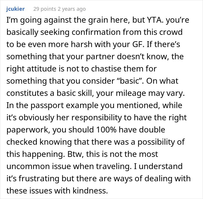 At the same time, several Redditors had a different opinion. While the girlfriend is missing a big chunk of knowledge she should have known by now, people argued she probably has no clue what the requirements for these basic life skills even are. You see, the fact that we sometimes grasp obvious things only later in life is nothing new.