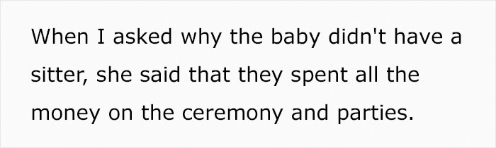 This is what happened to a 31-year-old man, Technical_Spread1810, whose younger sister got married a few days ago. Having spent “all the money on the ceremony and parties”, the couple decided not to hire a sitter and provided “a huge list of times” when the brother was supposed to watch the baby.