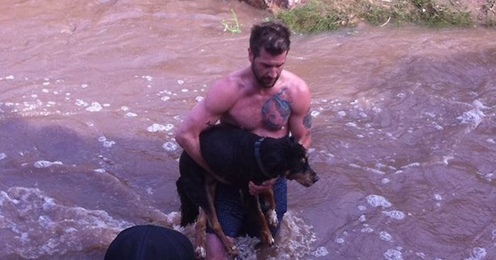 The senior dog was swept away by the raging waters of Mill Creek but this brave stranger jumped right after her