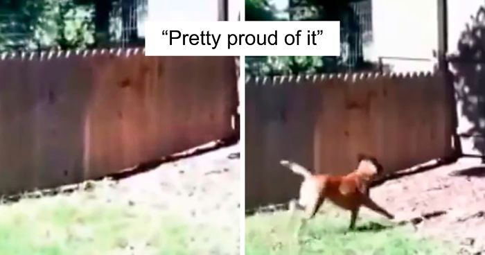 This 18-second-long tale documents a real-time conflict of an owner’s wish and his doggo’s will. The video shows a man flaunting his picture-perfect fence that’s supposed to keep Stella inside. “Pretty proud of it, I’d have to say,” the guy declares without a hint of doubt.