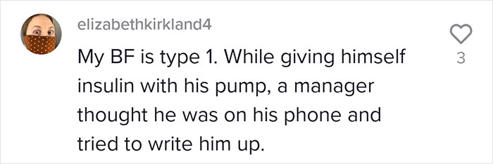 Insulin is usually taken every day and some people might need to take it twice a day, so it is understandable why Abby had a syringe in her bag. Unfortunately, her manager saw it and made an incorrect assumption and was ready to call the police.