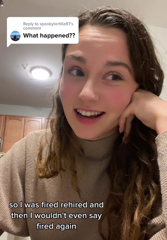 So, she got hired, then fired, then rehired, and then let go—quite an unorthodox situation