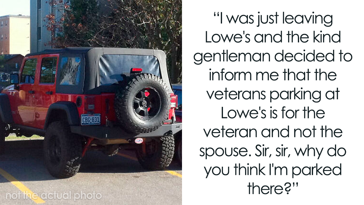 I was just leaving Lowe's and the kind gentleman decided to inform me that the veterans parking at Lowe's is for the veteran and not the spouse. Sir, sir, why do you think I'm parked there?