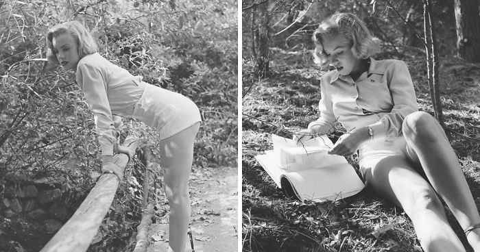 The photos were taken in 1950 with a still unknown Marilyn, by a Life Magazine photographer Ed Clark, at the suggestion of a friend of 20th Century Fox telling of the new hiring of the studios.