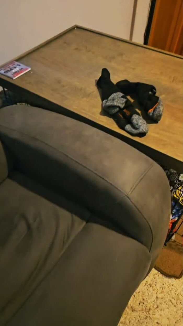 My cat trained my spouse to not leave socks on floor or anywhere. She would wait until we were asleep and then come in with the sock and the "look what I caught for you" meow, which woke them up. Now, no socks in the living room even though we lost her years ago.