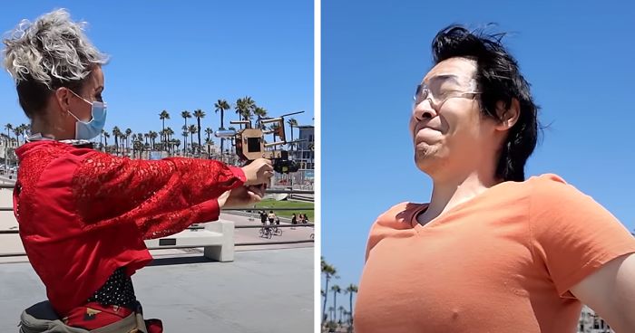 Pan also thought about accuracy quite a bit—he didn’t want to injure anyone by hitting them with a mask other than their mouths. So he attached a laser to the launcher to help him aim. Besides Pan, some residents of Huntington Beach in California tried out his gun, too.